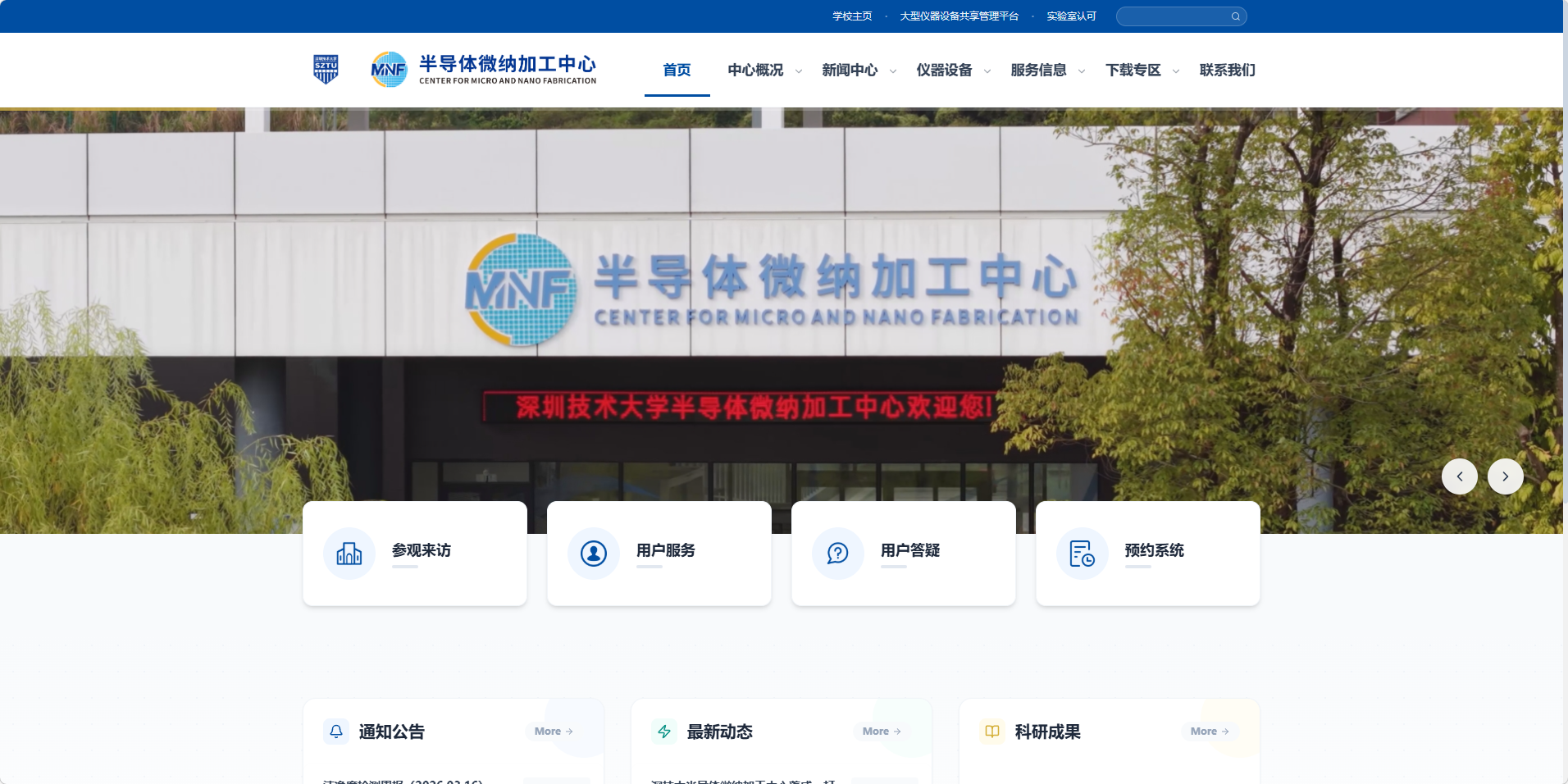 1、电脑打开半导体微纳加工中心网站:https://cmnf.sztu.edu.cn/