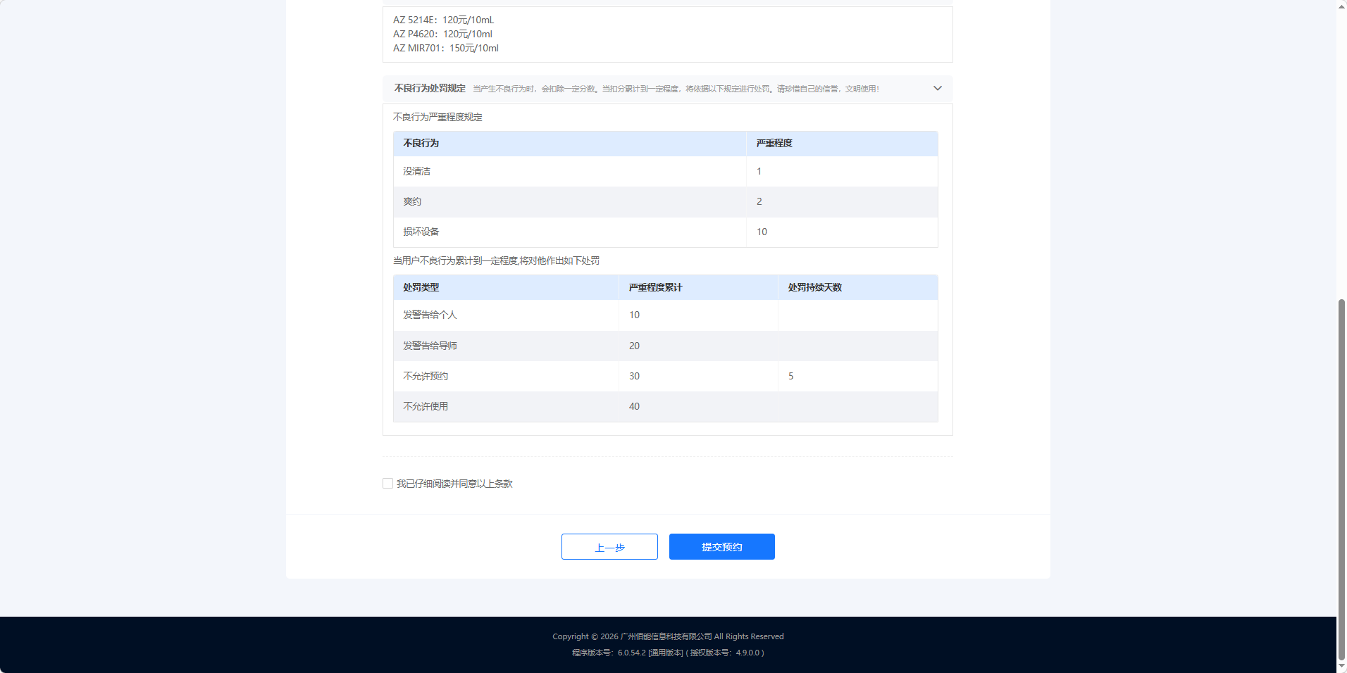 (3)确认预约信息后,勾选我已仔细阅读并同意以上条款后,点击提交预约,完成预约。