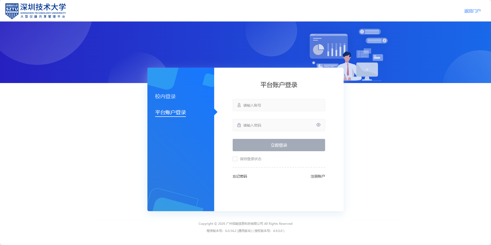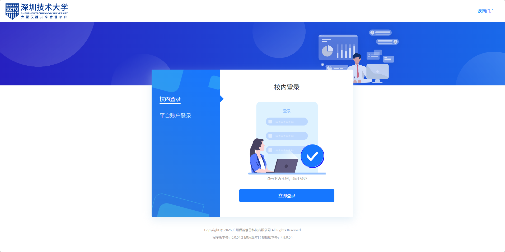 4、预约系统登录分“校内登录”和“平台账户登录”