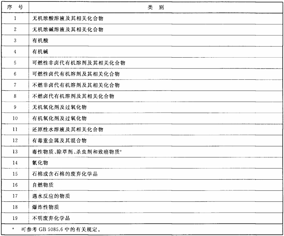 4.附录:参考GB/T 31190-2014将废弃化学品分类如下表
